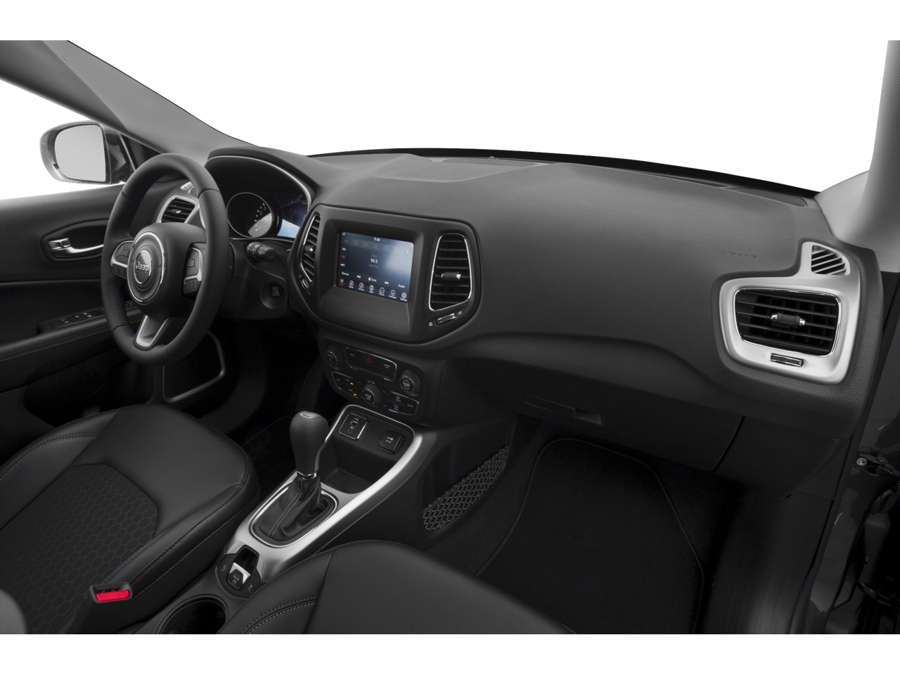 TRANSMISSION: 9-SPEED 9HP48 AUTOMATIC, POWER FRONT/FIXED REAR FULL SUNROOF, POPULAR EQUIPMENT GROUP Rear View Auto Dim Mirror, Power 8-Way Driver/Manual 6-Way Passenger Seats, 4-Way Power Lumbar Adjust, Cluster 7.0 Color Driver Info Display, 115V Auxiliary Power Outlet, 7.0 Touch Screen Display, ENGINE: 2.4L I4 ZERO EVAP M-AIR W/ESS, RADIO: UCONNECT 4 W/7 DISPLAY. Jeep Latitude with Diamond Black Crystal Pearlcoat exterior and Black interior features a 4 Cylinder Engine with 180 HP at 6400 RPM*.