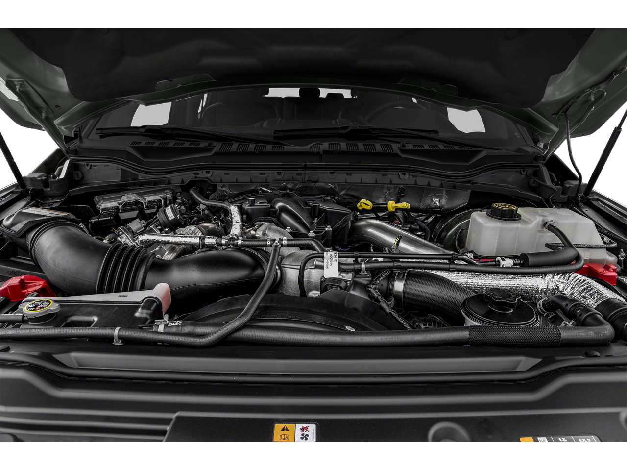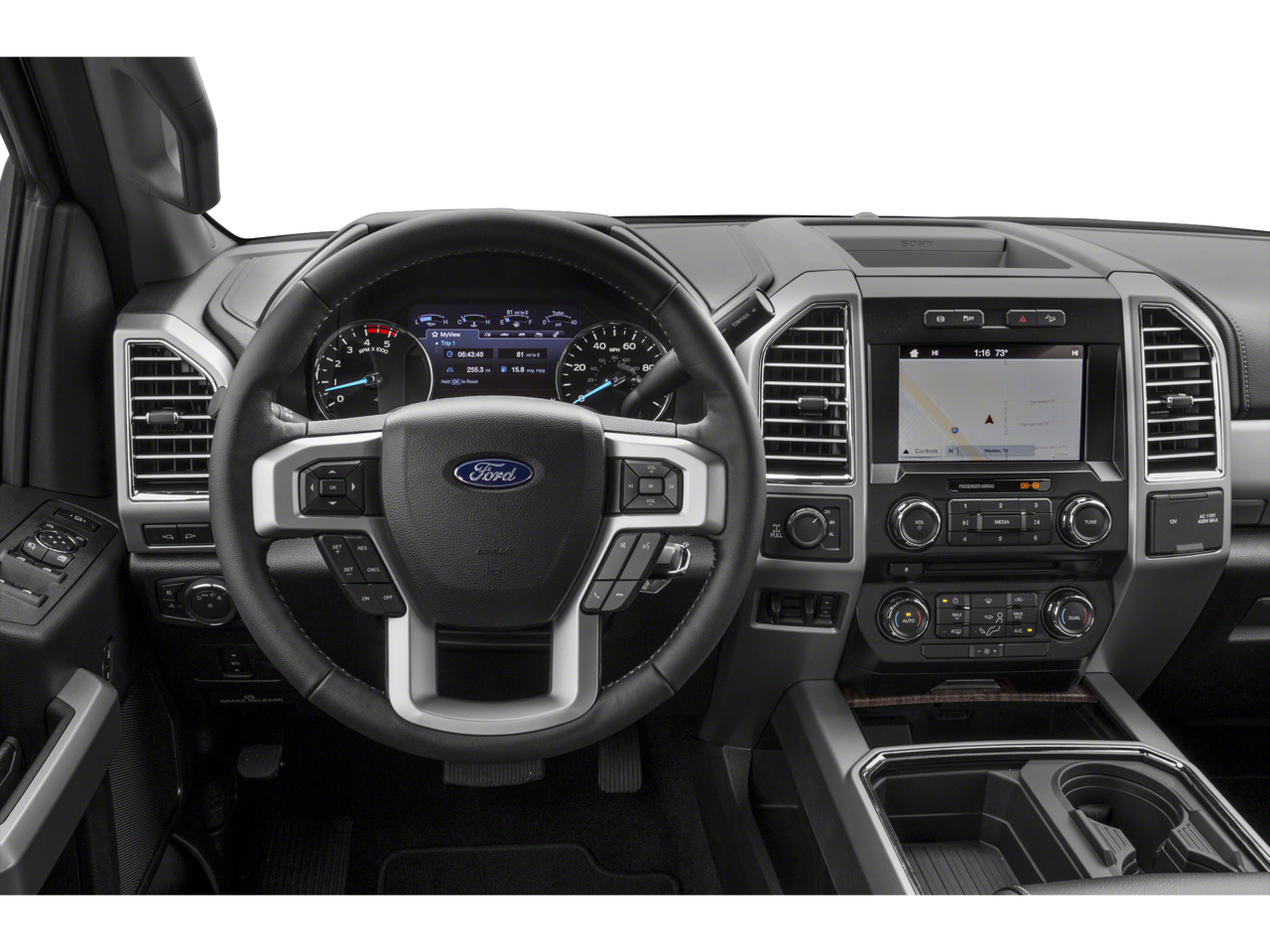 LARIAT ULTIMATE PACKAGE Power Heated/Cooled Driver Seat w/Memory, PowerScope Trailer Tow Mirrors w/Memory, Automatic High Beam, rain-sensing windshield wipers, EASY ENTRY®/Exit Memory Drivers Seat Feature, Tailgate Step & Handle, LED Box Lighting, LED Center High-Mounted Stop Lamp (CHMSL), Intelligent Access w/Push-Button Start, Power Heated/Cooled Passenger Seat, Voice-Activated Navigation, HD and SiriusXM Traffic and Travel Link, NOTE: SiriusXM Traffic and Travel Link includes a, Services are not available in Alaska and Hawaii, Memory Power-Adjustable Pedals, Remote Start System, Ambient Lighting - Fixed Color, Power Telescoping/Tilt Steering Wheel/Column, heat, memory and audio controls, Remote Tailgate Release, CHROME PACKAGE 2 front chrome tow hooks, Unique Chrome Mirror Caps, Wheels: 18 Chrome PVD Aluminum, Body-Color Door Handles w/Chrome Insert, 6 Angular Chrome Step Bars, Chrome Exhaust Tip, BLIND SPOT INFORMATION SYSTEM (BLIS) cross-traffic alert and trailer tow (BLIS sensor in taillamp), ELECTRONIC-LOCKING W/3.73 AXLE RATIO, ENGINE: 6.2L 2-VALVE SOHC EFI NA V8 FLEX-FUEL Flex-Fuel badge on fleet orders only (STD). Ford LARIAT with Oxford White exterior and Black interior features a 8 Cylinder Engine with 385 HP at 5750 RPM*.