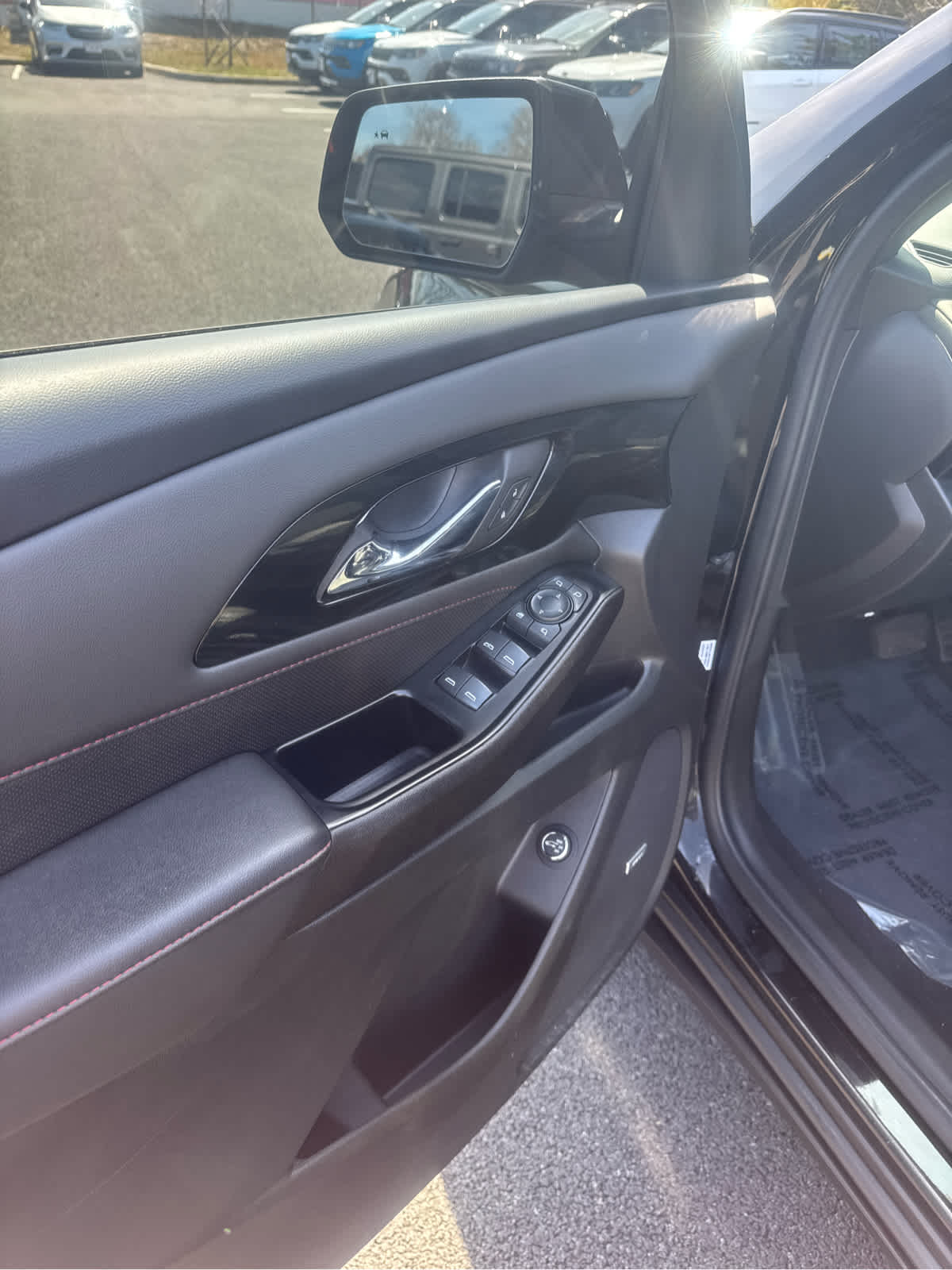 SUNROOF, DUAL SKYSCAPE 2-PANEL POWER with tilt-sliding front and fixed rear, includes power rear sunscreen, LPO, FLOOR LINER PACKAGE includes (RIA) front and second row all-weather floor liner, LPO, (RIB) third row all-weather floor liner, LPO and (CAV) integrated cargo liner, LPO, LPO, BLACK LUG NUT AND WHEEL LOCK KIT, THATCHAM includes 20 lug nuts, 4 locks and 1 key, AUDIO SYSTEM, CHEVROLET INFOTAINMENT 3 PLUS SYSTEM with connected Navigation, 8 diagonal HD color touchscreen, AM/FM stereo, Bluetooth® audio streaming for 2 active devices, Apple CarPlay® and Android Auto® capable, enhanced voice recognition, in-vehicle apps, cloud connected personalization for select infotainment and vehicle settings. Subscription required for enhanced and connected services after trial period (STD), ENGINE, 3.6L V6, SIDI, VVT (310 hp [232.0 kW] @ 6800 rpm, 266 lb-ft of torque [361 N-m] @ 2800 rpm) (STD), TRANSMISSION, 9-SPEED AUTOMATIC (STD). Chevrolet RS with MOSAIC BLACK METALLIC exterior and JET BLACK/ SPICE RED interior features a V6 Cylinder Engine with 310 HP at 6800 RPM*.