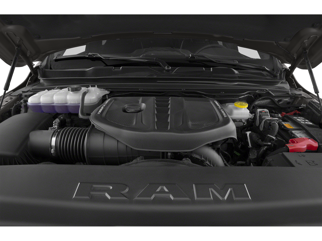 DUAL-PANE PANORAMIC SUNROOF LED Dome/Reading Lamp, Dome Dual LED Reading Lamp, ENGINE: 3.0L I6 HURRICANE HO TWIN TURBO ESS (STD), TRANSMISSION: 8-SPEED AUTOMATIC (8HP75) (STD). Ram Limited with Ivory White Tri-Coat Pearlcoat exterior and Black interior features a Straight 6 Cylinder Engine.